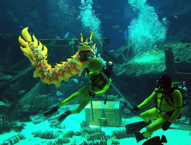နောက်ပြီးတော့ လူနှစ်ယာက်အနေနဲ့ ကုန်းပေါ်မှတောင် မနည်းဟန်ချက်ညီအောင် လုပ်ရတဲ့ နဂါးအကဟာ ရေအောက်မှာ ကိုယ်တိုင်တောင်မဟုတ်ဘဲ အကူကိရိယာနဲ့ ထိန်းကရတာဆိုတော့ ပိုလို့တောင်မလွယ်ပါဘူး။ အခုအချိန်မှာတော့ ဒီကကွက်ဆန်းဟာ နာမည်ကျော်ကြားခဲ့ြ့ပီး ကမ္ဘာလှည့်ခရီးသည်ပေါင်းများစွာကို ဆွဲဆောင်ထားနိုင်တဲ့ အကဖြစ်လာပါပြီ။