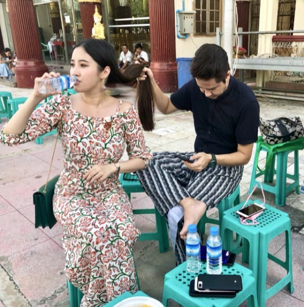 ဒါပေမယ့် ဒီပုံလေးမှာ ချွေးတေပြန်ပြီး ပူနေတဲ့ချစ်ဇနီးလေးရဲ့ ဆံပင်ကို မ ပေးထားတဲ့ ပိုင်ဇေရဲထွန်းရဲ့အပြုမူလေးကို ပရိသတ်ကြီးတွေ့ပါတယ်နော် ။