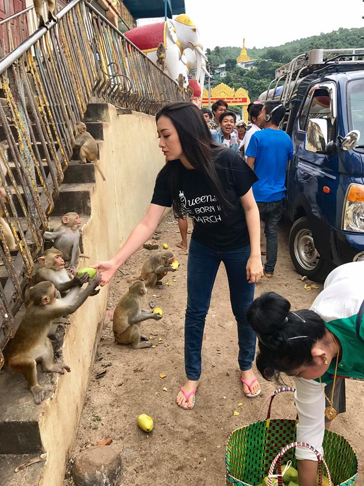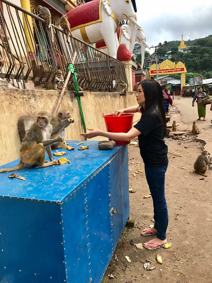 အမျိုးတွေကို သွားတွေ့တာ ဆိုပြီး ရေးထားတဲ့စာနဲ့အတူ ပုပ္ပါးက မျောက်လေးတွေကို အစာသွားကျွေးဖြစ်ခဲ့တဲ့အကြောင်း စနောက်ပြီးတင်ထားပါတယ်။